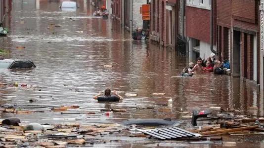 15日,比利时境内多条河流出现洪峰,多地被淹,数千栋房屋受损或倒塌,部分铁路运输中断。