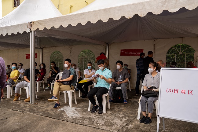 7月19日,中国公民在科特迪瓦阿比让的“春苗行动”接种点接种新冠疫苗后留观。