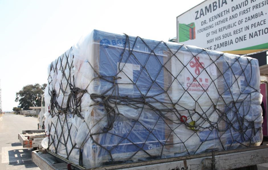 当日,中国政府援助的新冠疫苗运抵赞比亚,中国驻赞比亚大使李杰、赞卫生部常务秘书肯尼迪·马拉马和联合国驻赞协调员昆巴·加迪奥等出席迎接仪式。