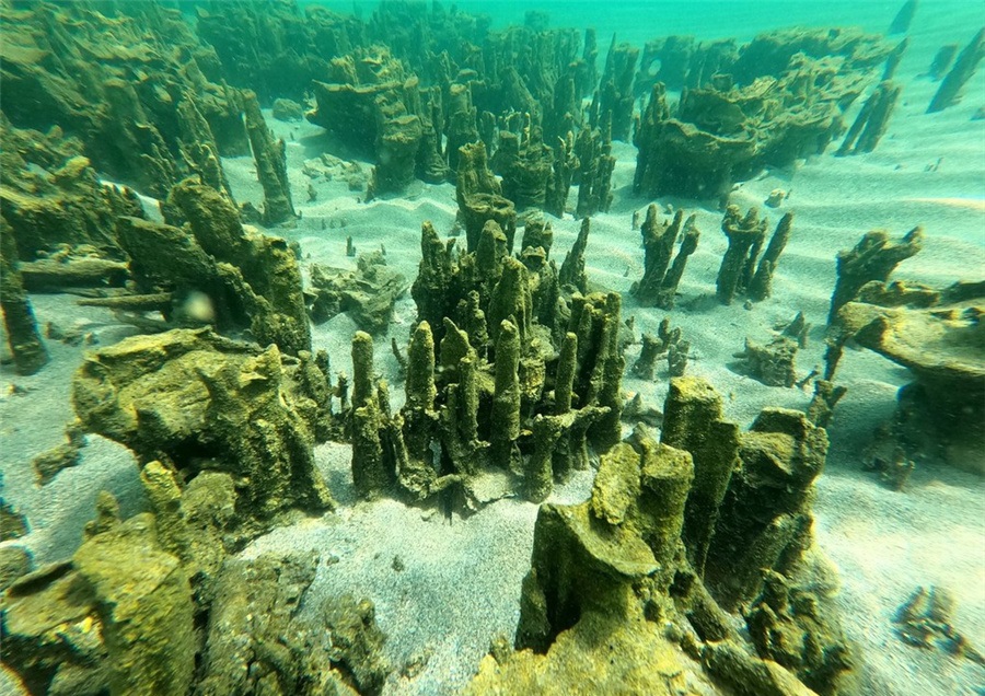 人民网讯 当地时间8月8日,土耳其比特利斯省,凡湖水下发现新微生物岩。