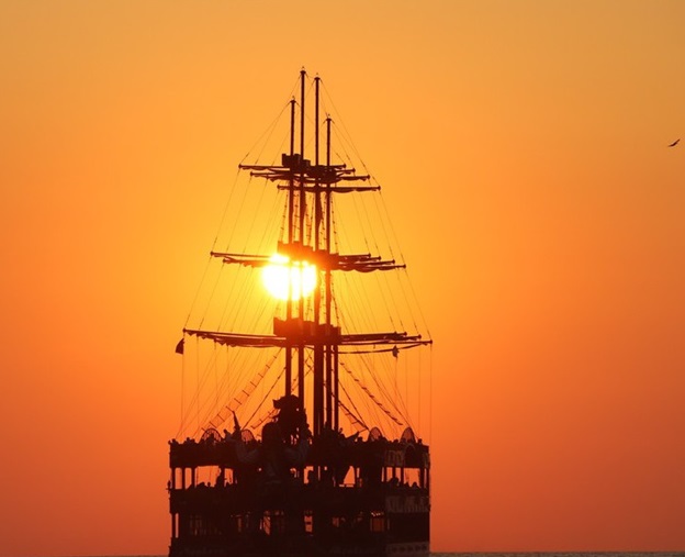 人民网讯 当地时间8月10日,土耳其日落时分,一艘帆船的剪影美如画。