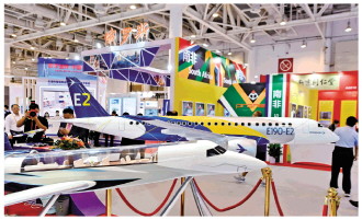 9月8日,2021金砖国家新工业革命展在厦门开幕。图为在展览上拍摄的参展飞机模型。 新华社发