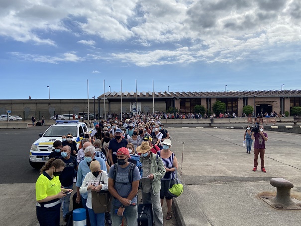 9月25日,大量民众在西班牙拉帕尔马岛港口等待离岛。
