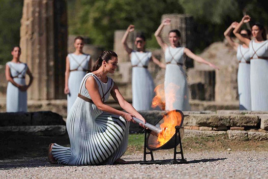 当日,北京冬奥会火种在奥林匹克运动的发祥地——希腊伯罗奔尼撒半岛的古奥林匹亚采集成功。在有着两千多年历史的赫拉神庙遗址前,奥运火种再次为北京点燃。