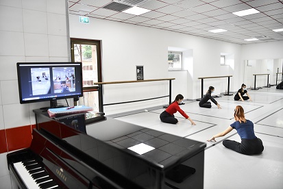 意大利罗马国家舞蹈学院于近日开启新学年,课程通过线上线下相结合的方式开展。学生参加线下课时必须遵守佩戴口罩、保持社交距离等防疫规定,而因疫情不能到场的教师和学生可通过网络形式参与。