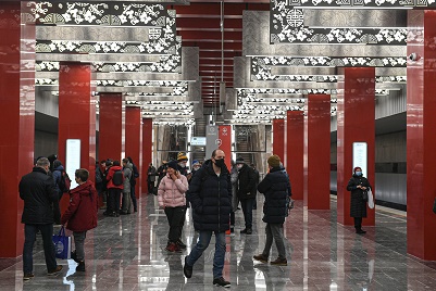 12月7日,由中国铁建承建的莫斯科地铁第三换乘环线西南段投入运行。俄罗斯总统普京以视频连线形式出席通车仪式并宣布正式开通。2017年1月,中国铁建中标莫斯科地铁第三换乘环线西南段项目,标段全长5.4公里,包含阿明耶沃站、米丘林大街站、韦尔纳茨基大街站3个车站和9条盾构隧道建设任务,这也是俄罗斯首次在地铁施工领域引进中国企业。走进米丘林大街地铁站,红色立柱、团寿纹、祥云等中国元素随处可见。这里已经成为中俄友谊的新地标,展现出“一带一路”上的跨文化盛景。