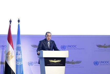 12月13日,埃及总理马德布利在沙姆沙伊赫举行的《联合国反腐败公约》第九届缔约国会议上发言。