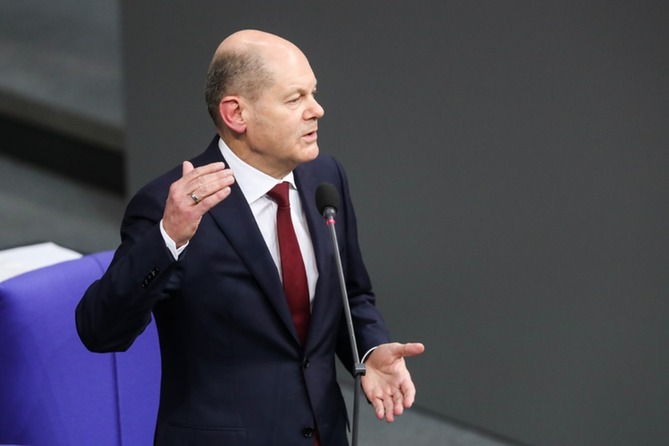 1月12日,德国总理朔尔茨在位于柏林的德国联邦议会接受问询。(新华社记者 单宇琦 摄)