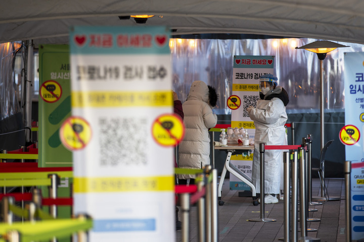 图为1月18日拍摄的韩国首都首尔一处新冠检测点。 新华社记者 王益亮 摄
