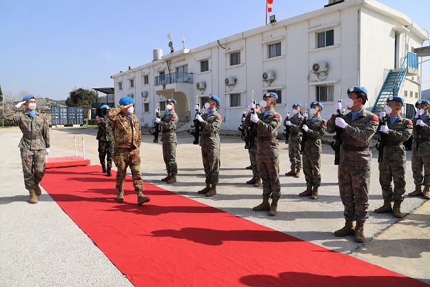 2月18日,在黎巴嫩南部辛尼亚村的中国赴黎维和部队营区,联合国驻黎巴嫩临时部队(联黎部队)司令德尔科尔检阅中国维和部队。