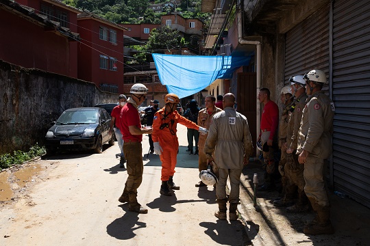 2月22日,在巴西里约热内卢州城市彼得罗波利斯,消防人员准备开展搜救行动。