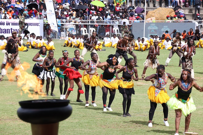 4月18日,在津巴布韦第二大城市布拉瓦约,舞蹈演员在独立42周年庆典上表演。