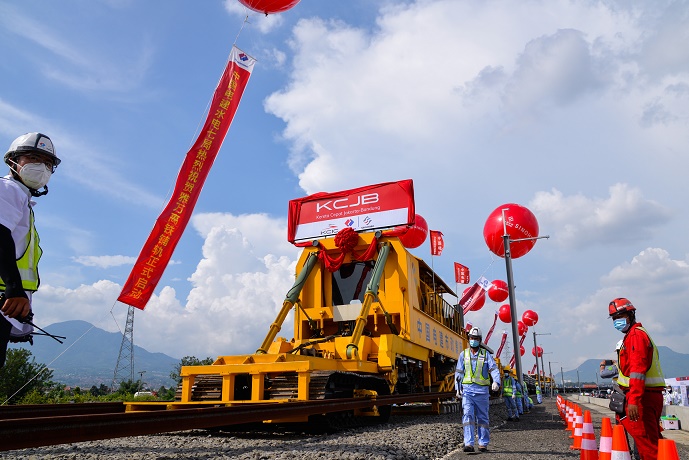 20日,随着第一根500米长轨在印度尼西亚西爪哇省万隆县雅万高铁动车走行线顺利铺设,雅万高铁开始启动铺轨施工。雅万高铁是“一带一路”建设和中印尼两国务实合作的标志性项目。