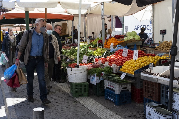 4月20日,顾客在希腊雅典市中心一处露天集市采购。