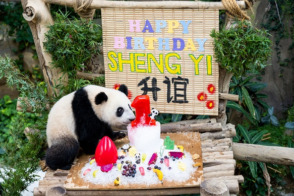 5月31日,大熊猫宝宝“升谊”在马来西亚吉隆坡附近的国家动物园庆祝一岁生日。