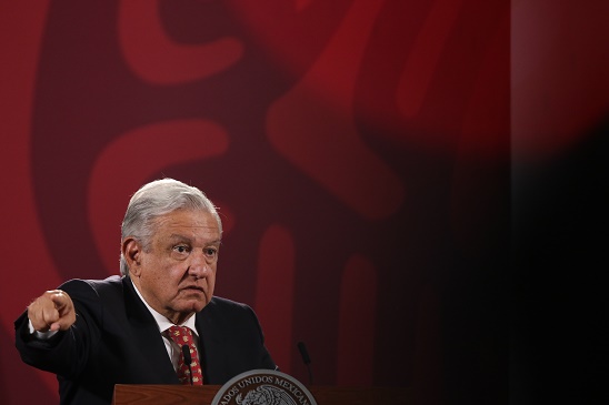 6月6日,在墨西哥首都墨西哥城国家宫,墨西哥总统洛佩斯出席新闻发布会。