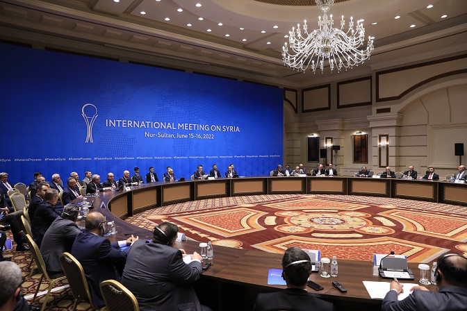 这是6月16日在哈萨克斯坦努尔苏丹拍摄的第18轮叙利亚问题阿斯塔纳会谈现场。