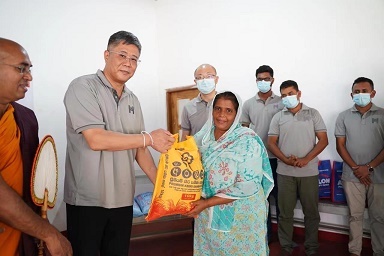 8月5日上午,由招商局慈善基金会捐助、联合汉班托塔国际港口集团有限公司(以下简称“汉港”)发起向汉港周边困难家庭捐赠“爱心包”活动在汉港周边9个寺庙同步举行。这是招商局在斯里兰卡遭受重大政经危机以来,在汉港地区开展的最大范围的捐赠活动,得到了当地民众的广泛支持和赞誉。招商局集团驻斯里兰卡首席代表兼汉港公司首席执行官刘恩怀与斯里兰卡南部首席僧王Wimalabuddi Thero共同出席了各“爱心包”分派点的活动。