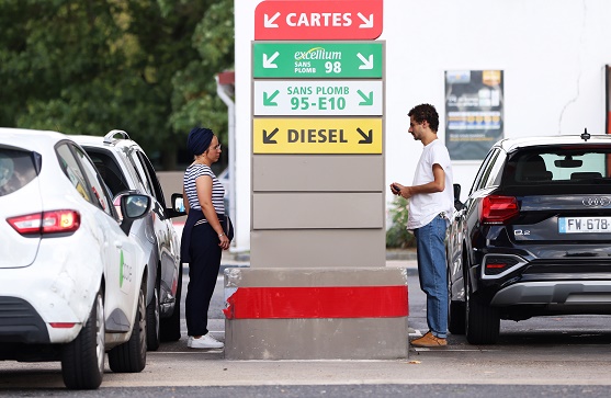 8月18日, 人们在法国巴黎郊区的一处加油站加油。