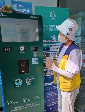 一般游客在进入牛岛前,可以在码头等处扫码,签署支持牛岛资源循环运动的声明。游客用完岛上餐饮商铺提供的可重复使用塑料杯后,可将其放入回收设备,回收后的杯子经过清洗、消毒等流程后将被重复利用。为鼓励游客积极参与,回收终端提供积分、现金返还和交通卡充值等形式的奖励。此外,对于没有用完的塑料杯,游客可以带出牛岛,在济州岛主要交通设施、指定咖啡店等处利用回收设备进行回收。