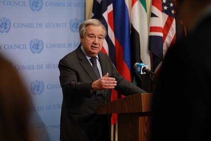 联合国秘书长古特雷斯在记者会上发言。新华社记者 谢锷 摄