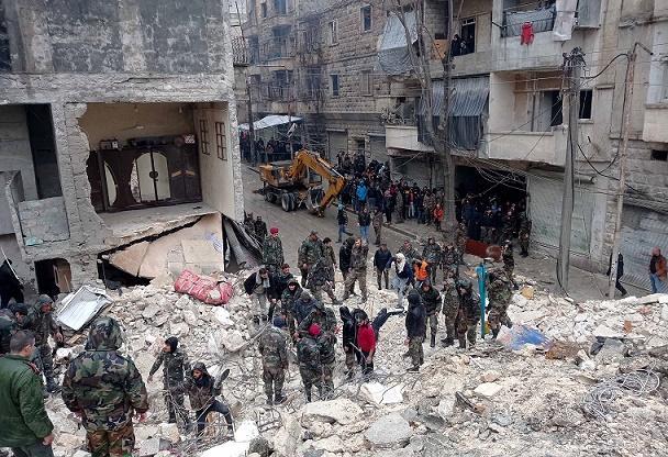 土耳其南部靠近叙利亚边境地区2月6日发生强烈地震,叙北部主要城市阿勒颇多处房屋垮塌。