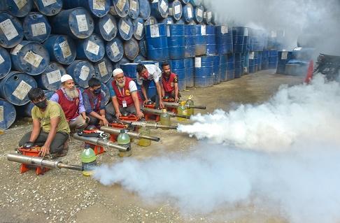 7月16日,工作人员在孟加拉国达卡进行灭蚊工作,以预防登革热。