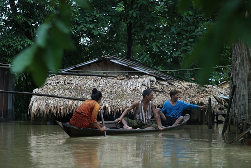 连日来,持续的强降雨引发缅甸多地洪水和河水水位上涨。