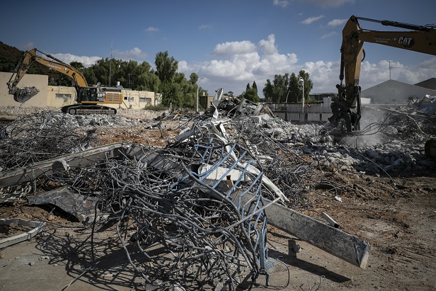 10月15日,工作人员清理冲突中被毁的斯代罗特警察局。新华社记者 陈君清 摄