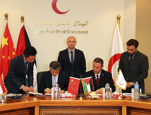 《中华人民共和国政府与巴勒斯坦国政府向巴勒斯坦加沙地带提供紧急人道主义物资援助交接证书》签字仪式12月3日在埃及首都开罗举行。中国驻埃及大使廖力强、巴勒斯坦驻埃及大使迪亚布、埃及红新月会总干事拉米等出席。