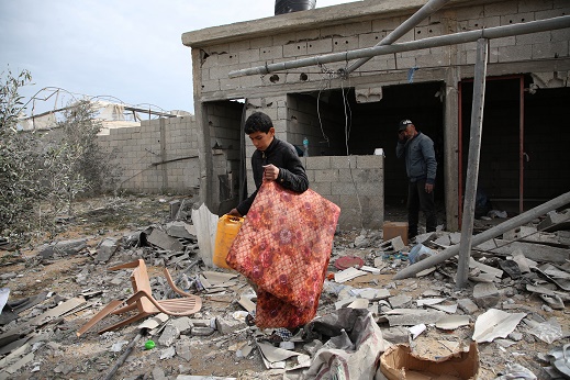 26日,在加沙地带南部城市拉法,人们在废墟中收集物品。新华社发(哈立德·奥马尔摄)