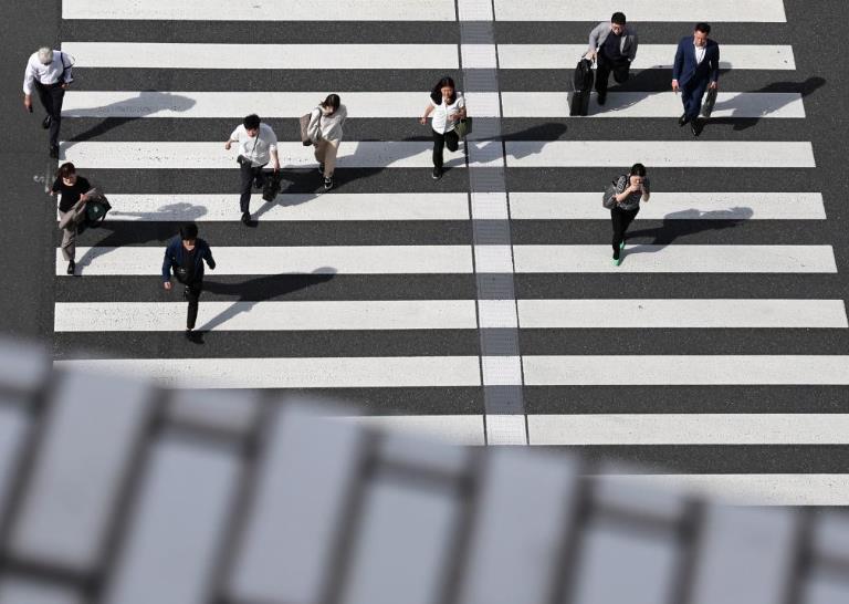 5月15日,在日本东京,行人通过东京站附近的一处人行横道。新华社记者贾浩成摄