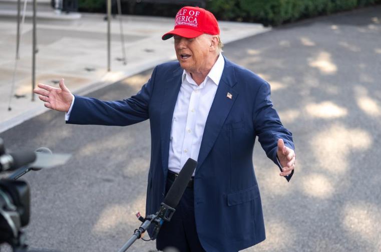 7月1日,在美国首都华盛顿白宫,美国总统特朗普在登机前回答记者提问。新华社记者胡友松摄