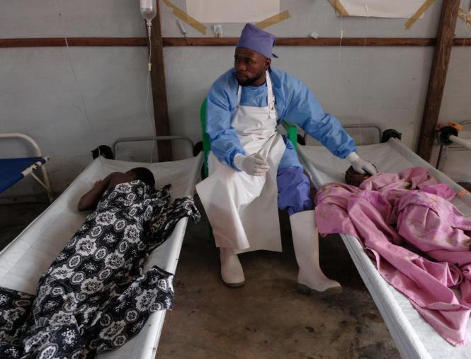 7月10日,在刚果(金)首都金沙萨市郊的一座霍乱治疗中心,医护人员照料病患。