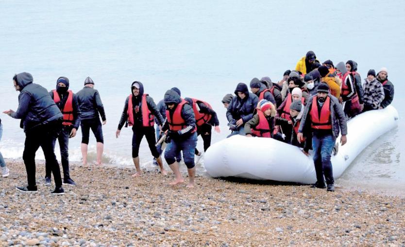 图为一艘偷渡船抵达英国邓杰内斯角海岸。新华社发