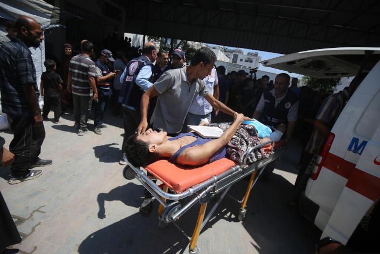 7月20日,伤员被转移至加沙城的一所医院。新华社发(里泽克·阿卜杜勒贾瓦德摄)