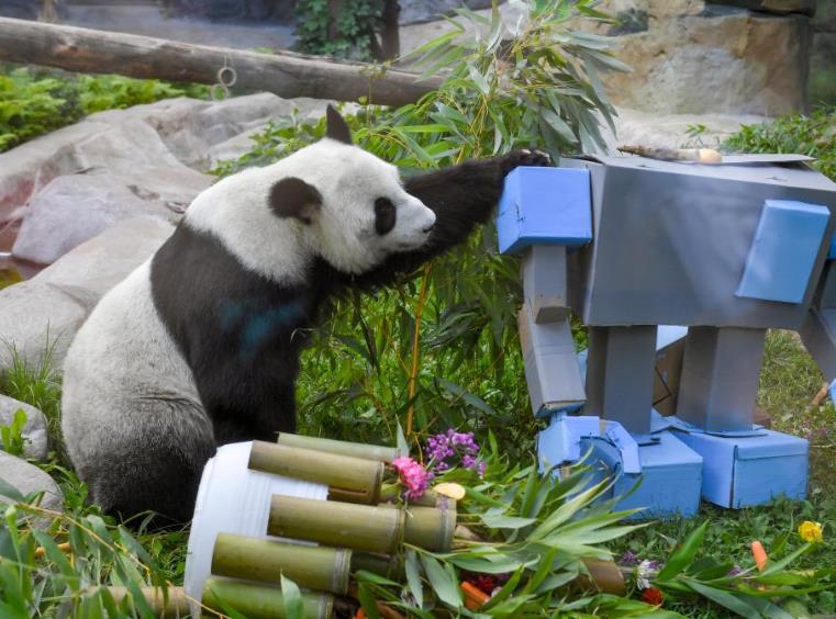 当日,莫斯科动物园举行活动,为旅俄大熊猫“丁丁”庆祝8岁生日。