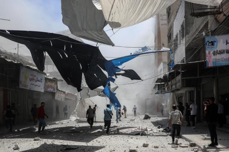 5月31日,人们在加沙城查看遭以军袭击后的废墟。新华社发(里泽克·阿卜杜勒贾瓦德摄)