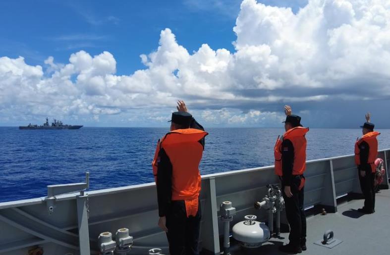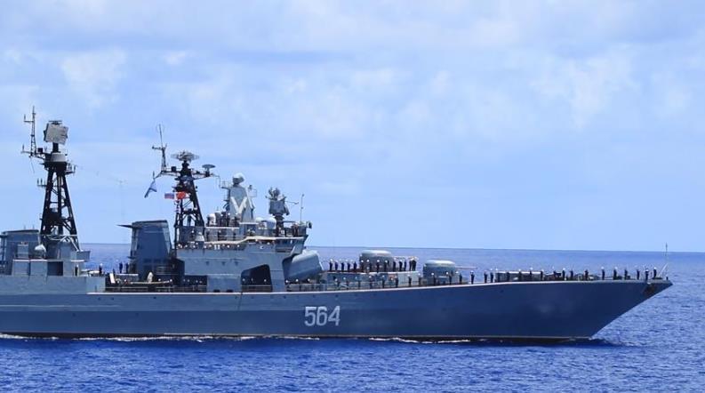 中俄“海上联合-2025”联合演习当地时间1日至5日在俄罗斯符拉迪沃斯托克附近海空域举行。演习结束后,参与演习的中国海军导弹驱逐舰绍兴舰、综合补给舰千岛湖舰与俄罗斯海军“特里布茨海军上将”号大型反潜舰等3艘水面舰艇及2架舰载直升机组成联合编队,位西太平洋某海域组织海上联合巡航。