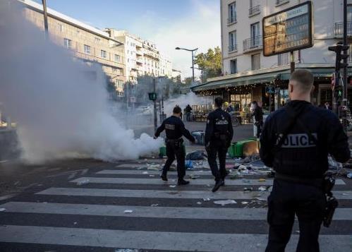 法国教育部宣布,当天全国约有100所高中停课,另有27所学校遭示威者封锁。