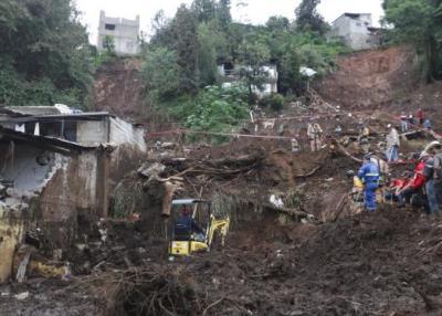 10月13日,在墨西哥普埃布拉州瓦乌奇南戈市,救援人员在强降雨引发的山体滑坡现场进行搜救。新华社发(弗朗西斯科·卡涅多摄)