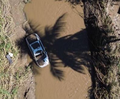 10月12日,在墨西哥韦拉克鲁斯州波萨里卡,一辆汽车陷在强降雨导致的积水中(无人机照片)。新华社发(弗朗西斯科·卡涅多摄)