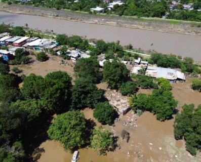这是10月12日在墨西哥韦拉克鲁斯州波萨里卡拍摄的强降雨后的景象(无人机照片)。新华社发(弗朗西斯科·卡涅多摄)