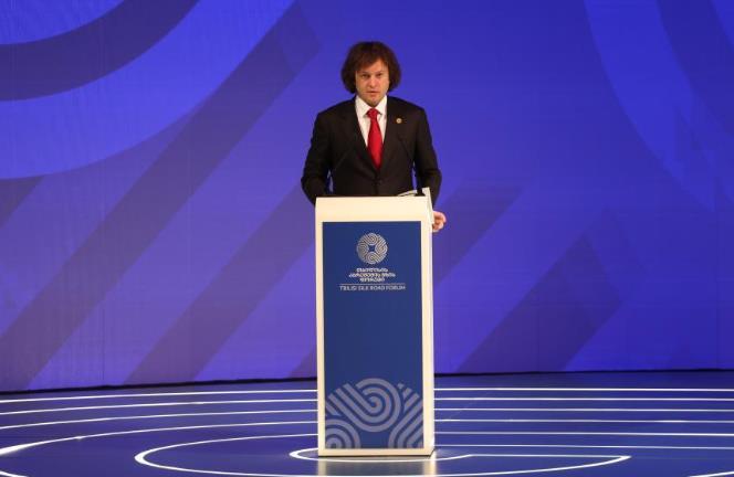 10月22日,格鲁吉亚总理科巴希泽在首都第比利斯举行的第五届第比利斯丝绸之路国际论坛期间表示,共建“一带一路”对格鲁吉亚具有重要意义。在共建“一带一路”框架下,格鲁吉亚的互联互通能力不断增强,对华经贸合作持续扩大。新华社发(格鲁吉亚政府供图)