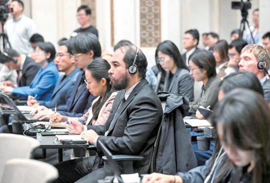 ▲ 10月24日,中外记者参加介绍和解读中共二十届四中全会精神新闻发布会。 新华社发