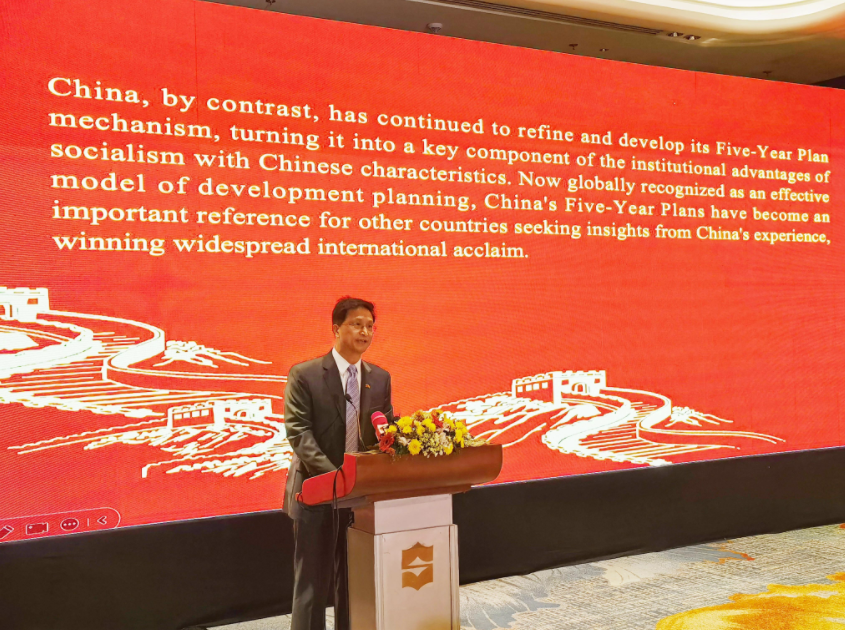 戚振宏表示,中国共产党二十届四中全会审议通过的“十五五”规划建议,是中国今后五年经济社会发展的宏伟蓝图,也展示了中国与世界合作共赢的美好愿景。科学制定和接续实施五年规划,是中国共产党治国理政一条重要经验,也是中国特色社会主义一个重要政治优势。中国五年规划是被实践证明了的成功发展规划,成为世界各国借鉴中国经验的重要方面,赢得广泛国际赞誉。戚振宏介绍了中国“十四五”时期取得的重大成就及“十五五”规划提出的未来五年中国经济社会发展七个主要目标,强调中国将以新发展为世界各国提供新机遇。戚振宏指出,与中国同行就是与机遇同行,相信中国就是相信明天,投资中国就是投资未来。中斯传统友谊源远流长,两国是发展振兴的同路人、合作共赢的好伙伴。斯里兰卡“繁荣国家、幸福生活”美好愿景以及“清洁兰卡”“数字转型”和“乡村发展”三大规划与中国“十五五”规划中有关内容高度契合,中方愿同斯方加强发展战略对接,在高质量共建“一带一路”框架下,共同拓展港口经济、现代农业、数字经济、绿色经济、旅游等合作,助力斯里兰卡经济社会发展,为两国人民创造更多福祉,携手打造中斯命运共同体。