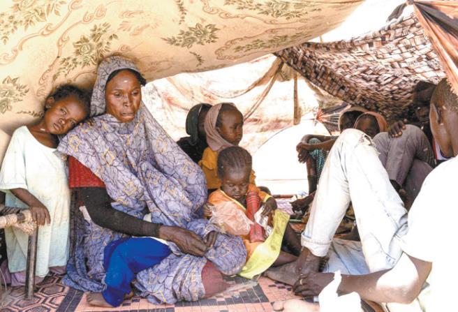 图为在苏丹北达尔富尔州塔维拉镇,流离失所者在一处用树枝和布料搭建的简易帐篷下休息。 新华社发