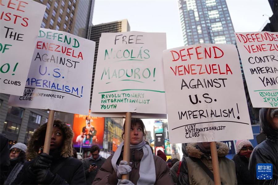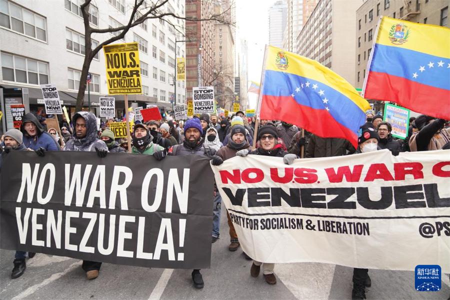 1月3日,近千名民众在美国纽约举行集会游行,抗议美国对委内瑞拉实施军事打击。