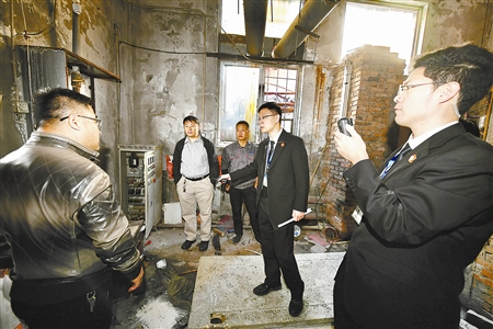 日前,天津市南开区人民法院连续工作8小时,强制腾空南开区广开新街与广开南街交口处的某娱乐场所,并将场地移交申请执行人某房产服务管理所。此次腾房行动出动干警50余名,法警10余名,警车10余辆,搬家公司出动货车90余车次,共对5层楼进行清腾,清腾面积高达5000余平方米。图为执行干警在腾退现场查看电闸。