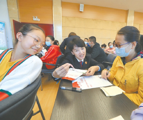 “我的梦想是当一名医生!疫情期间,奋战在一线的医生叔叔、阿姨,让我深受感动!”10月17日至18日,山东省聊城市外国语学校的440名初一新生,走进山东省检察院青少年法治教育聊城基地参观学习。图为小源告诉检察官自己打算在梦想留言簿上写下“白衣天使梦”。本报记者匡雪 通讯员王凯忠 张永利摄